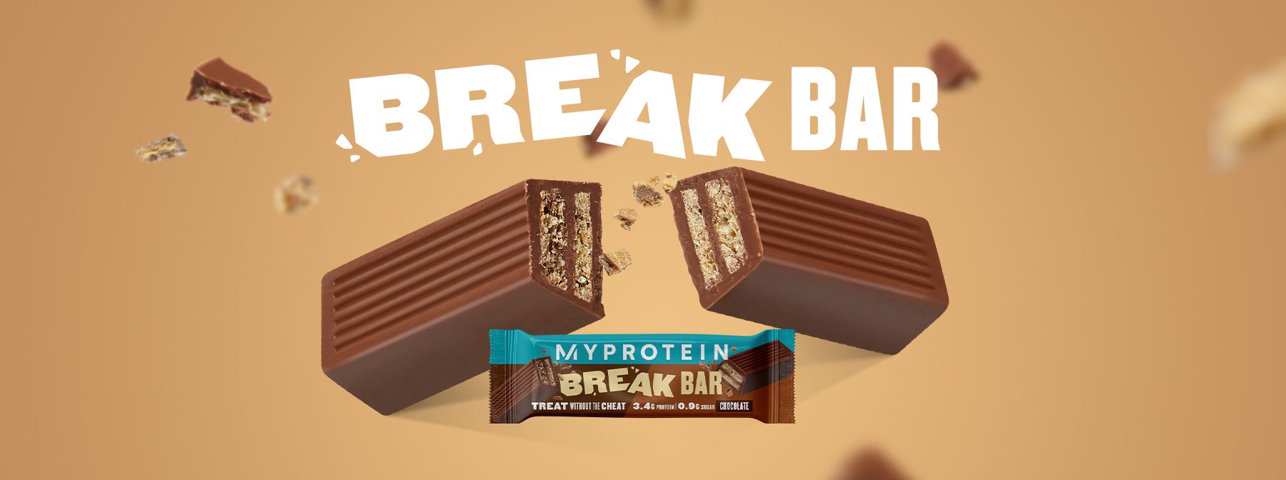 Break Bar sisältää runsaasti proteiinia ja on paljon vähäsokerisempi kuin perinteinen suklaapatukkasi, mutta silti yhtä maukas. Patukka on valmistettu oikeasta maitosuklaasta ja siinä on useita rouskuvia vohvelikerroksia. Tätä ei voi vastustaa.