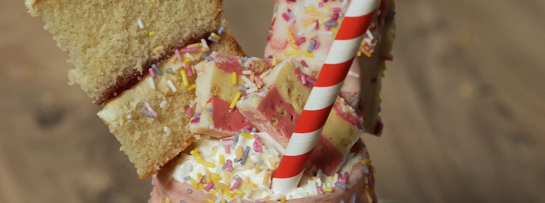 Tämä freakshake eli superpirtelö -resepti on täysin vastustamaton ja todella yli vedetty – ihan kuin kaikkien juhlienkin tulisi olla. Saa itsesi juhlatuulelle valmistamalla itsellesi juuri nyt yksi herkullinen palautusjuomaksi täydellisesti sopiva superpirtelömme tai säästä resepti ja valmista pirtelö yllätyksenä läheisellesi hänen syntymäpäivänään. Tämä pirtelö on itsessään jo syntymäpäivälahja.