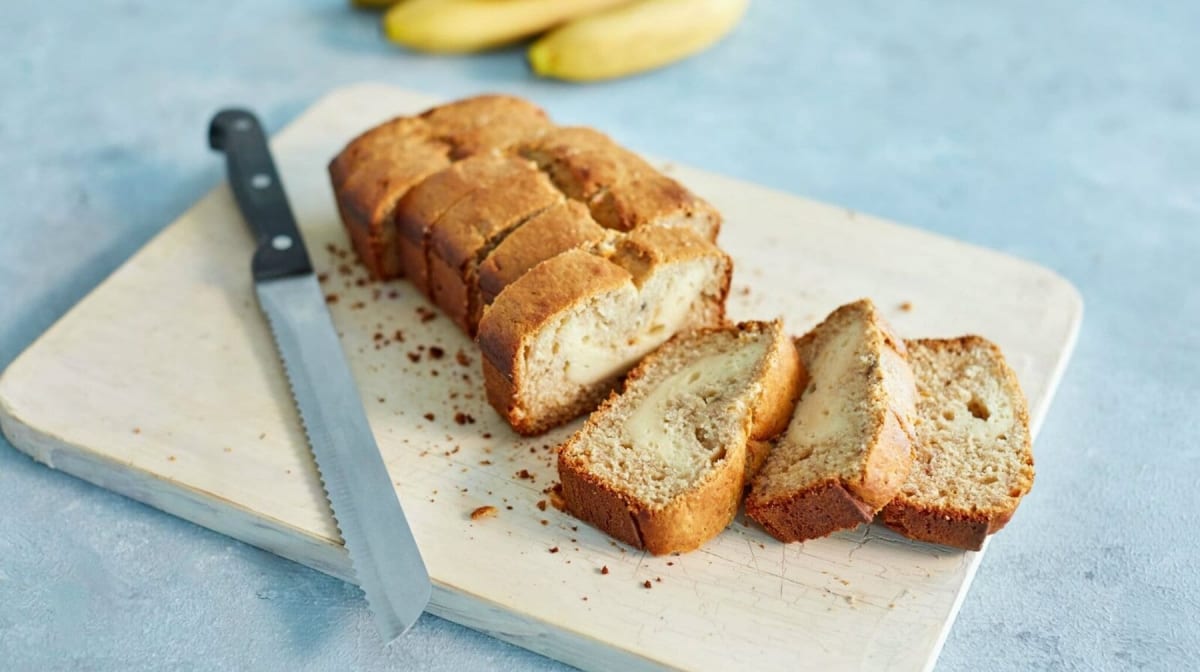 Tämä juustokakkutäytteinen banana bread toimii täydellisesti terveellisenä aamupalana, lataukseen ja tankkaukseen treenien lomassa tai hyvällä omatunnolla nautittavana välipalana, joka vie makeannälän mennessään.