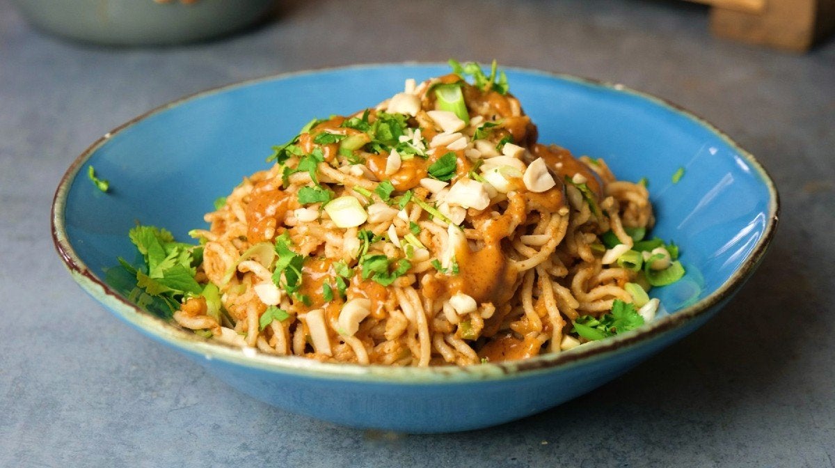 - Sekoita maapähkinäkastike ja maapähkinät nuudeleihin ja ne ovat valmiita tarjottavaksi!