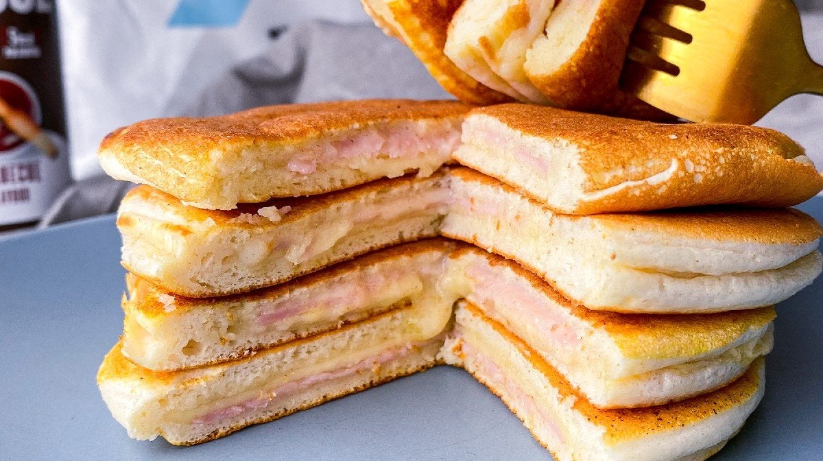 Sekoita kulhossa Protein Pancake Mix ja lisää maito joukkoon vähän kerrallaan, kunnes taikina on sopivan paksuista. - Kaada noin 2rkl takinaa kuumalle pannulle, lisää kinkku ja juusto päälle ja sinetöi vielä yhdellä ruokalusikallisella pannukakkuseosta. Paista 1-2 minuuttia ja sitten käännä.