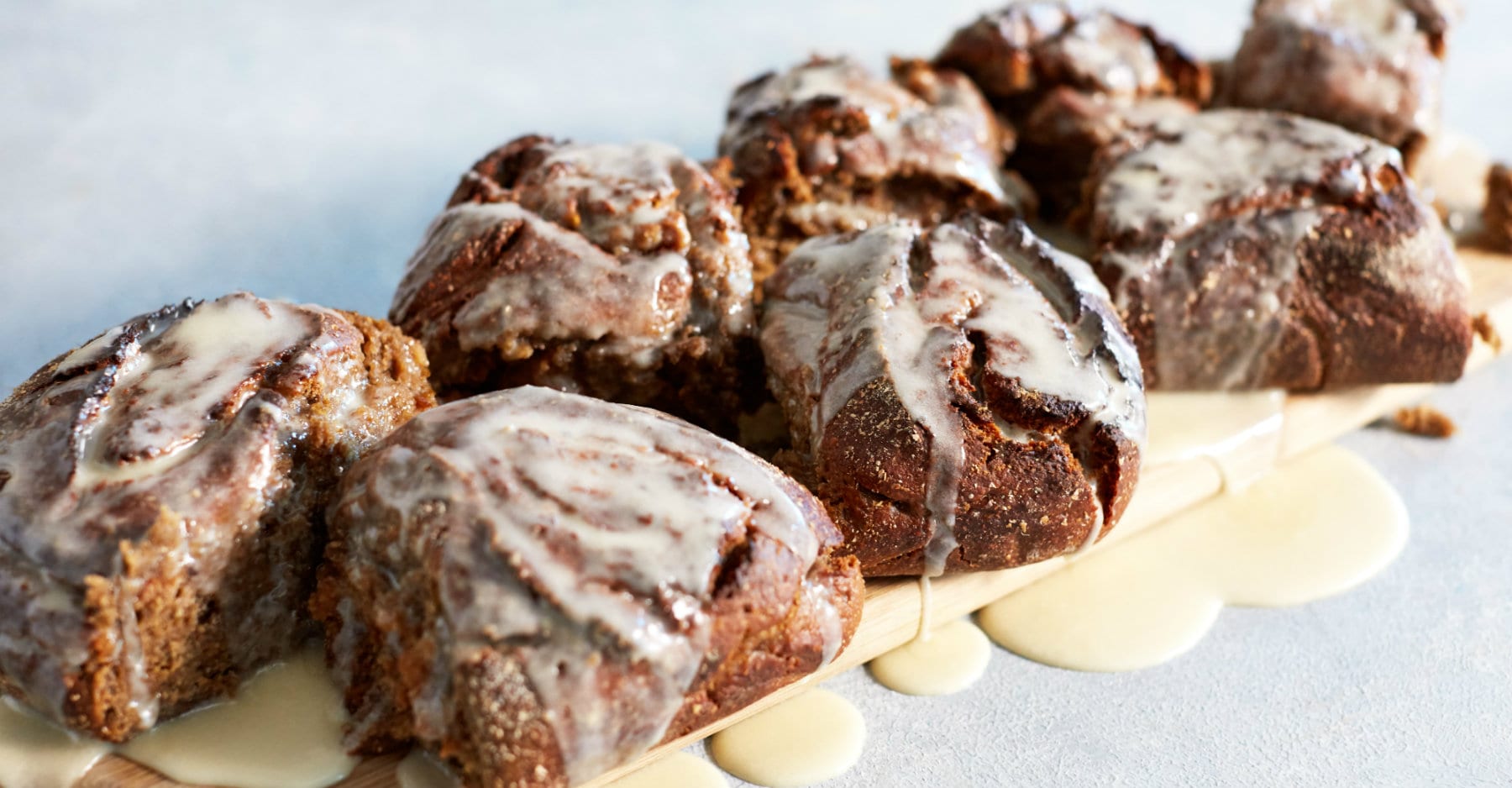 Tee ensin taikina. Lämmitä mantelimaito lämpimäksi, ei kuumaksi. Lisää se pieneen kulhoon hiivan kanssa ja kaada joukkoon myös sokeriton siirappi. Jätä sivuun noin 5 minuutin ajaksi. Tee seuraavaksi pellavansiemensekoitus lisäämällä 3rkl vettä 1rkl pellavansiemeniä ja anna imeytyä muutaman minuutin ajan. Tämä sitoo kanelikierteen taikinan yhteen. Nyt yhdistä jauhot, vegaani proteiinia, kaneli ja sulatettu kookosöljy isossa kulhossa. Sekoita ainekset hyvin keskenään ja lisää ne sitten asteittan maito-hiiva-sekoitukseen. Lisää taikina jauhoiselle pinnalle ja vaivaa noin 20 sekuntia. Laita sitten taikinapallo kulhoon ja peitä kulho keittiöliinalla. Laita kulho jonnekin lämpimään turpoamaan tuplasti suuremmaksi seuraavan tunnin ajaksi. Tee täyte. Sekoita yhteen pähkinät, banaanit ja taatelit, kunnes sekoitus on sileää. Kun taikina on turvonnut, lämmitä uuni 180°. Lisää hieman jauhoja suurelle alustalle ja kaulitse taikina isoksi neliöksi. Levitä täyte tasaisesti koko taikinan päälle ja rullaa sitten taikina rullaksi aloittaen lyhimmästä sivusta. Leikkaa rulla 8-10 palaan. Laita palat leivinpaperilla peitetylle uunipellille ja peitä keittiöliinalla. Jätä seisomaan vielä 20 minuutin ajaksi. Paista 25-30 minuuttia, kunnes väri on kullanruskea ja jätä sitten jähtymään. - Tee kuorrutus sekoittamalla vegaani tuorejuusto ja mantelimaito keskenään. Lisää joukkoon hieman sokeritonta siirappia, jos haluat enemmän makeaa. Kuorruta kanelikierteet ja nauti.